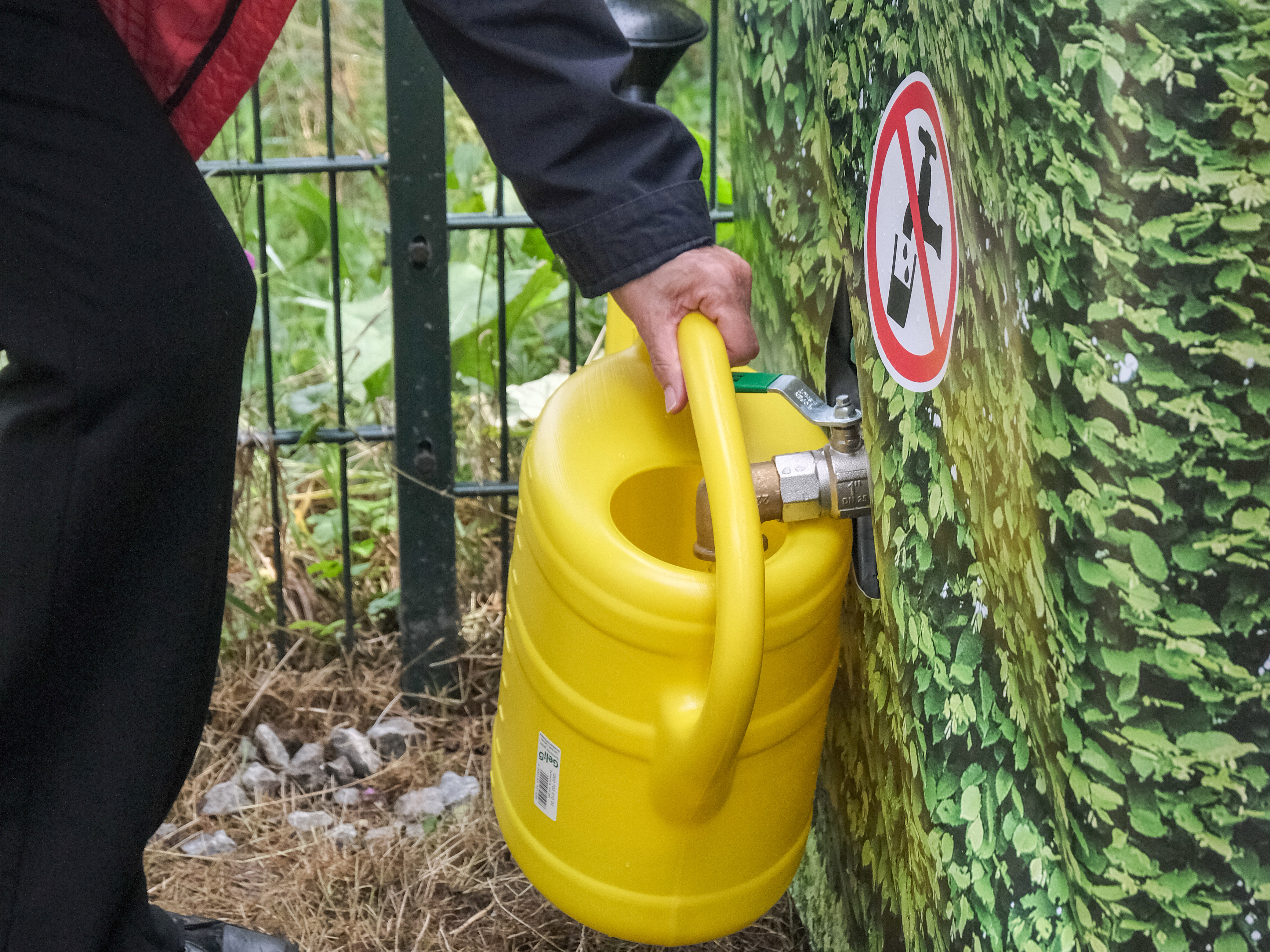 Für die Aktion stehen zunächst 50 Regenwasser-Container zur Verfügung. Jeder kann bis zu 1.000 Liter fassen und ist mit einer UV-Schutzfolie verkleidet. Die Teilnehmenden bekommen ihr Fass, zwei Holzpaletten zum Draufstellen und eine Gießkanne kostenfrei geliefert. Voraussetzung ist eine geeignete Regenwassersammelfläche an einem Fallrohr auf dem eigenen Grundstück, beziehungsweise – falls es nicht das eigene Grundstück ist – das Einverständnis des Eigentümers. Die genutzte Dachfläche sollte mindestens 35 Quadratmeter groß sein, damit sich das Fass bei Regen rasch auffüllt. Interessierte benennen bei Ihrer Bewerbung auch eine öffentliche Grünfläche, die sie mit dem gesammelten Wasser gießen möchten.
