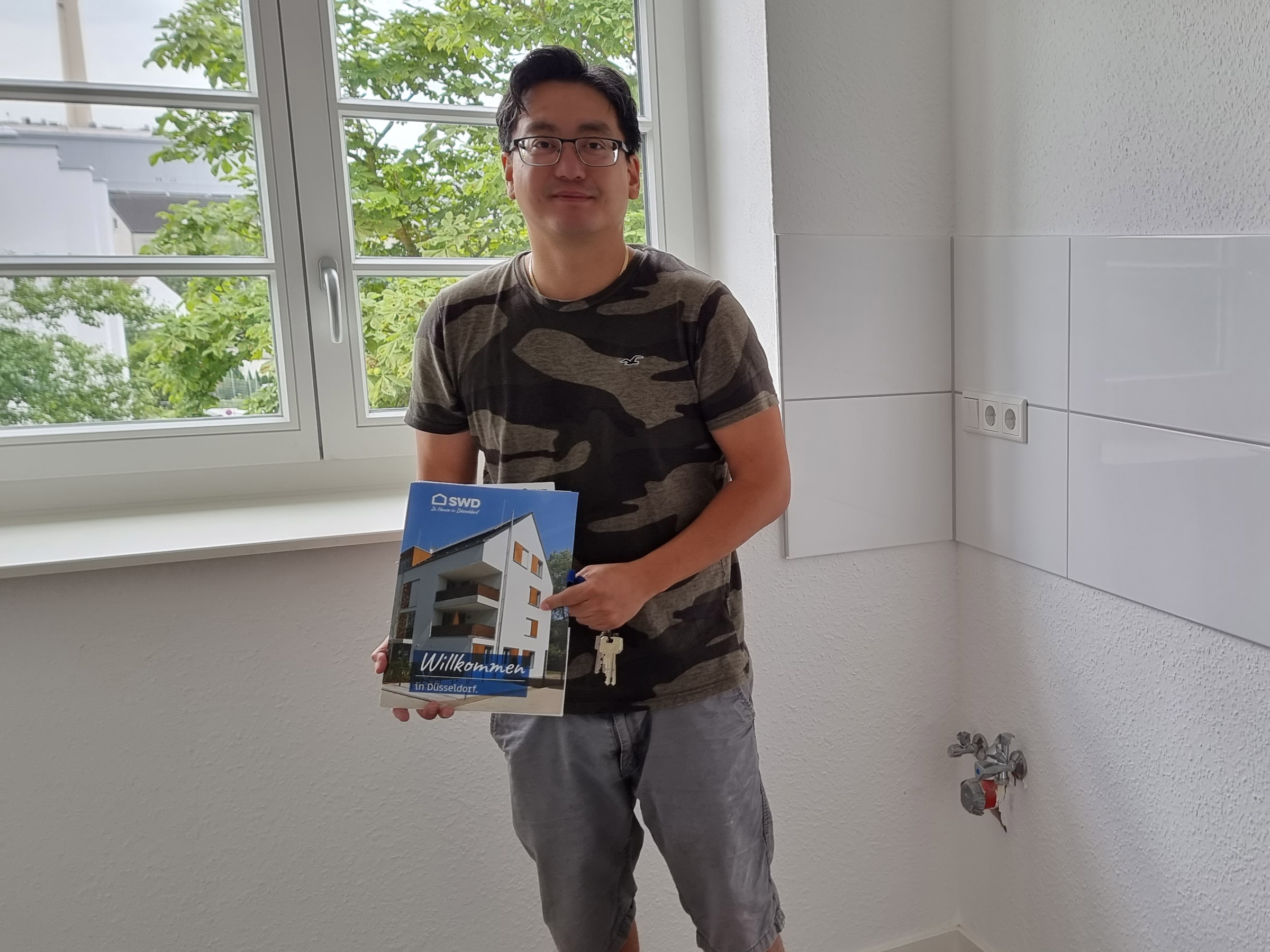 Im Juli 2021 wurde mit der Sanierung der Hausnummern 72 bis 82 begonnen. Nun sind sie fertiggestellt und die erste Schlüsselübergabe konnte am 18. Juli erfolgen. Hong Thai Pham, war der erste, der die Schlüssel in Empfang nehmen durfte. Er ist neuer Mieter bei der SWD und begeistert vom neuen Wohnkonzept in den denkmalgeschützten Häusern am Hellweg.