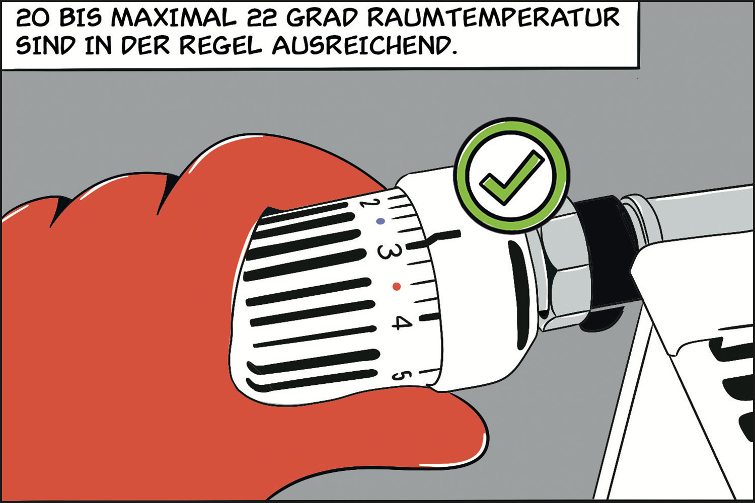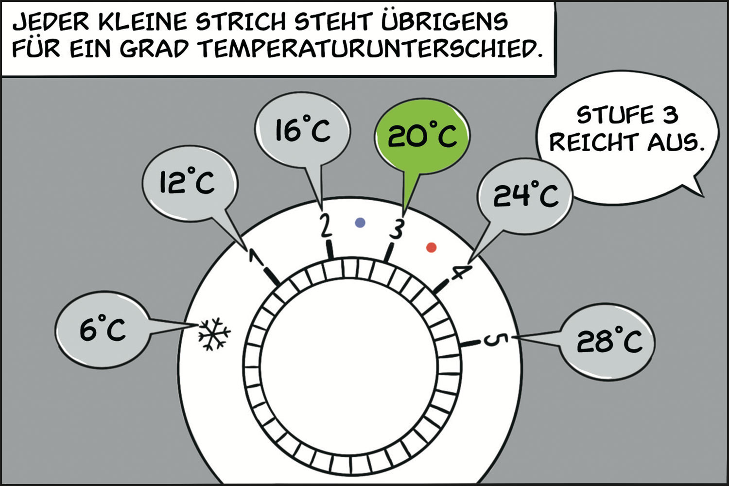 Im heutigen Comic geht es um die angemessene Raumtemperatur. Diese liegt nämlich bei 20 bis 22 Grad. Wie man die an den Markierungen auf dem Heizungsregler erkennt, lernen Sie im untenstehenden Comic.