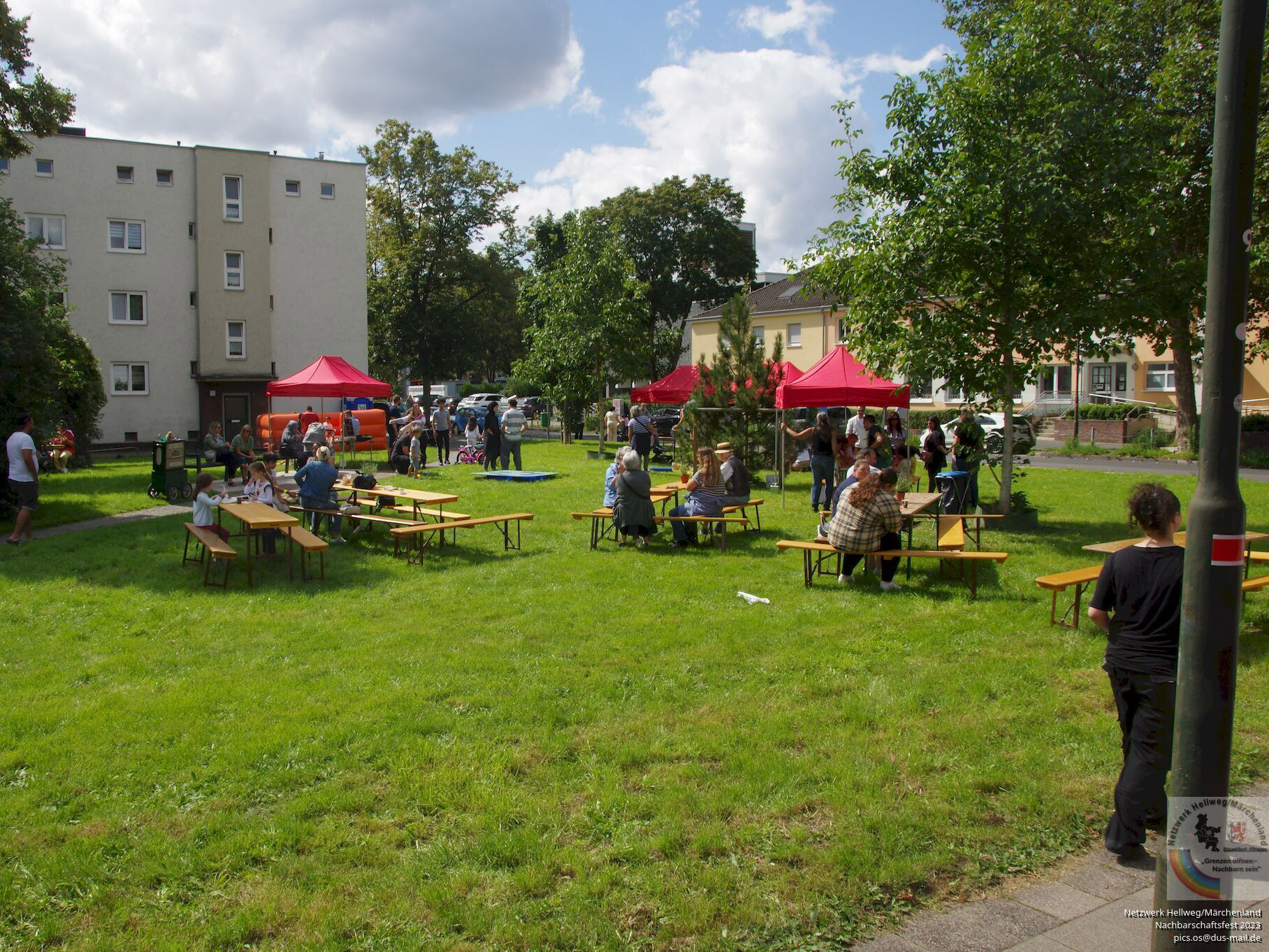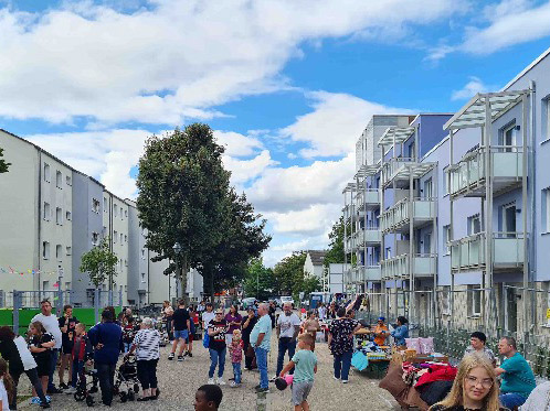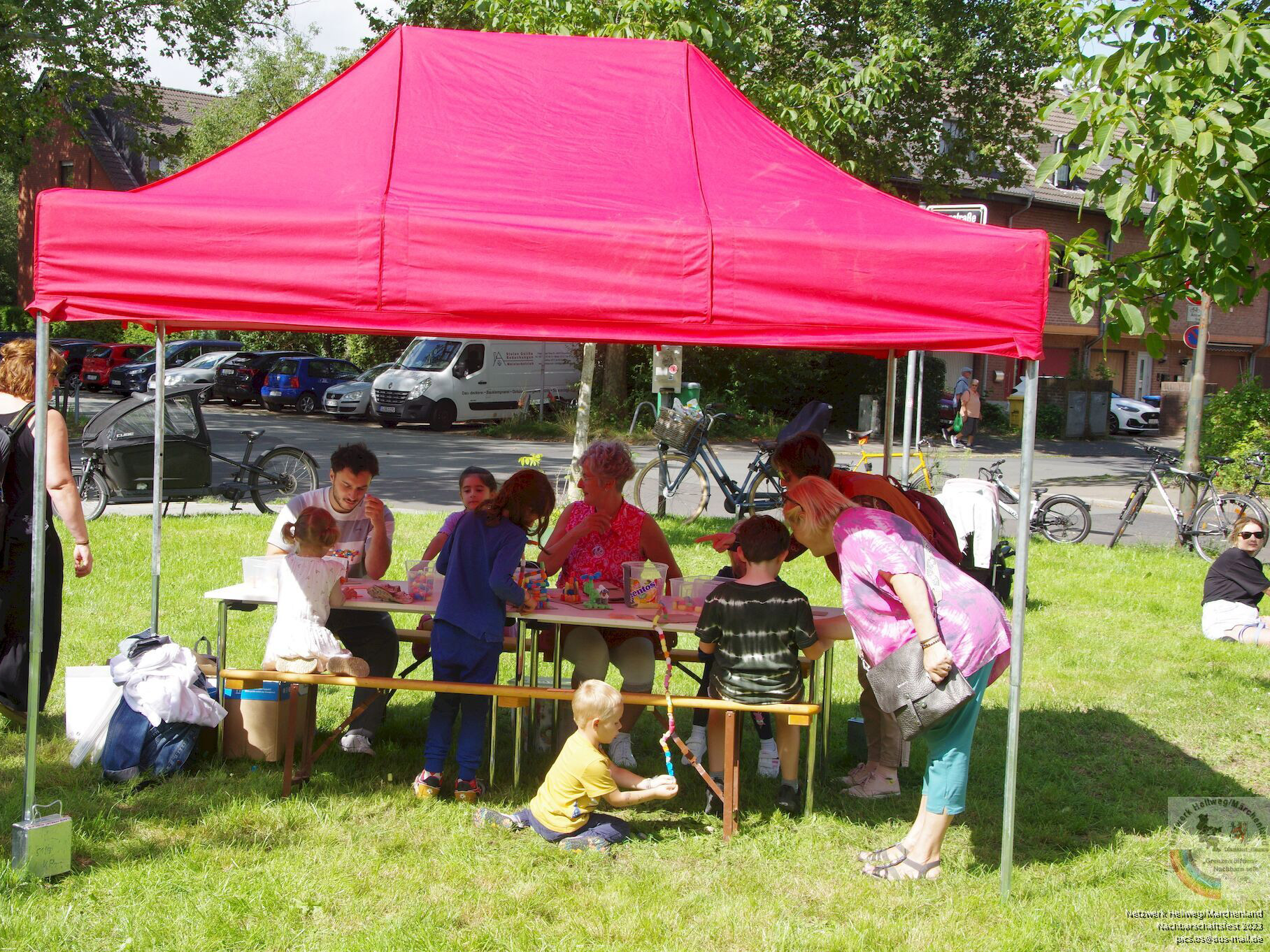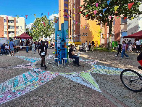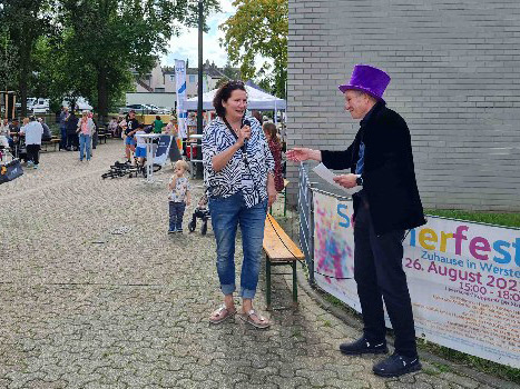 In Wersten freuten sich die Akteure über jede Menge Besucher. Erstmals konnten die Wohnungsgesellschaften, das Quartiersmanagement und die AWO gemeinsam ein Fest organisieren. Das Wetter spielte mit und das Programm war äußerst vielfältig, für alle Altersgruppen war etwas dabei. Im Mittelpunkt des Programms stand eine Street-Art-Aktion des Quartiersmanagements an den 'Blauen Säulen'. Hier konnte jeder mitmachen und seiner Kreativität freien Lauf lassen.