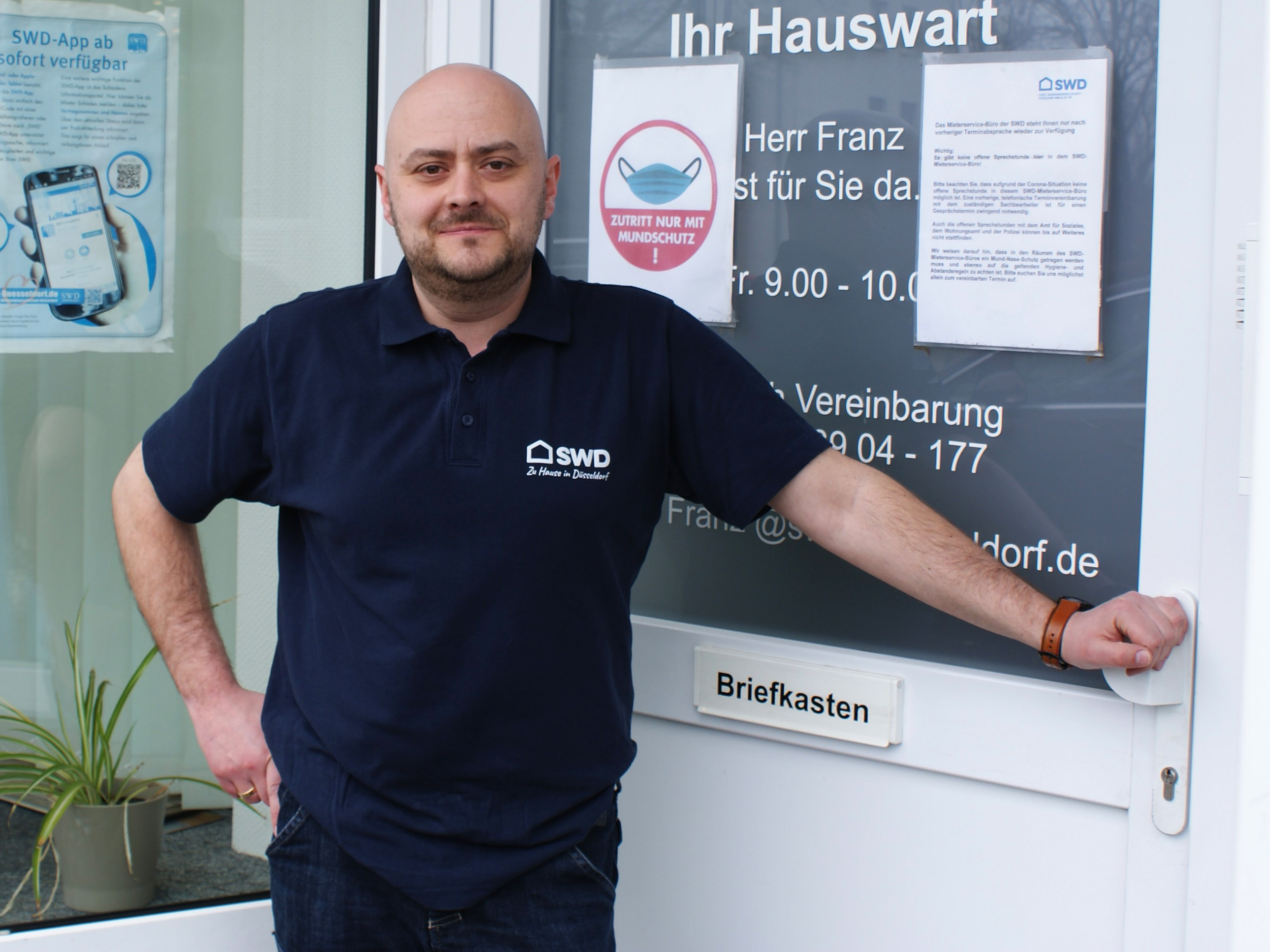 Seit dem 1. November verstärkt Thomas Klosek das Team 8 der SWD nun als Hausbeauftragter. Dem 38-jährigen Duisburger gefällt sein neuer Arbeitsplatz, aufgrund des Wechsels zwischen Büroarbeit und Aufgaben draußen an den Gebäuden. Auch den häufigen Kontakt mit Menschen findet der gelernte Mechatroniker gut.