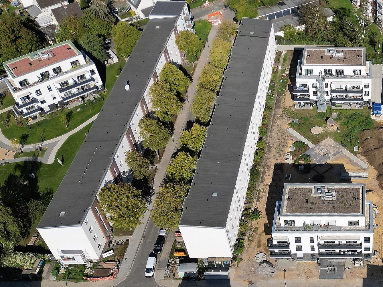 Mit fünf Neubauprojekten, die in den kommenden Monaten starten, schafft die SWD 186 bezahlbare Wohnungen. Zum Teil − wie an der Heyestraße und der Hansaallee – laufen bereits erste Vorarbeiten. Auch an der Chemnitzer Straße, der Ernst-Derra-Straße und der Talstraße werden bald Baustellen eingerichtet. Das Gesamtvolumen der fünf genannten neuen und der beiden noch laufenden Projekte an der Hospitalstraße und der Leverkuser Straße summiert sich auf fast 90 Mio. Euro. Insgesamt realisiert die SWD aktuell 298 Wohnungen, die fast ausschließlich öffentlich gefördert sind.