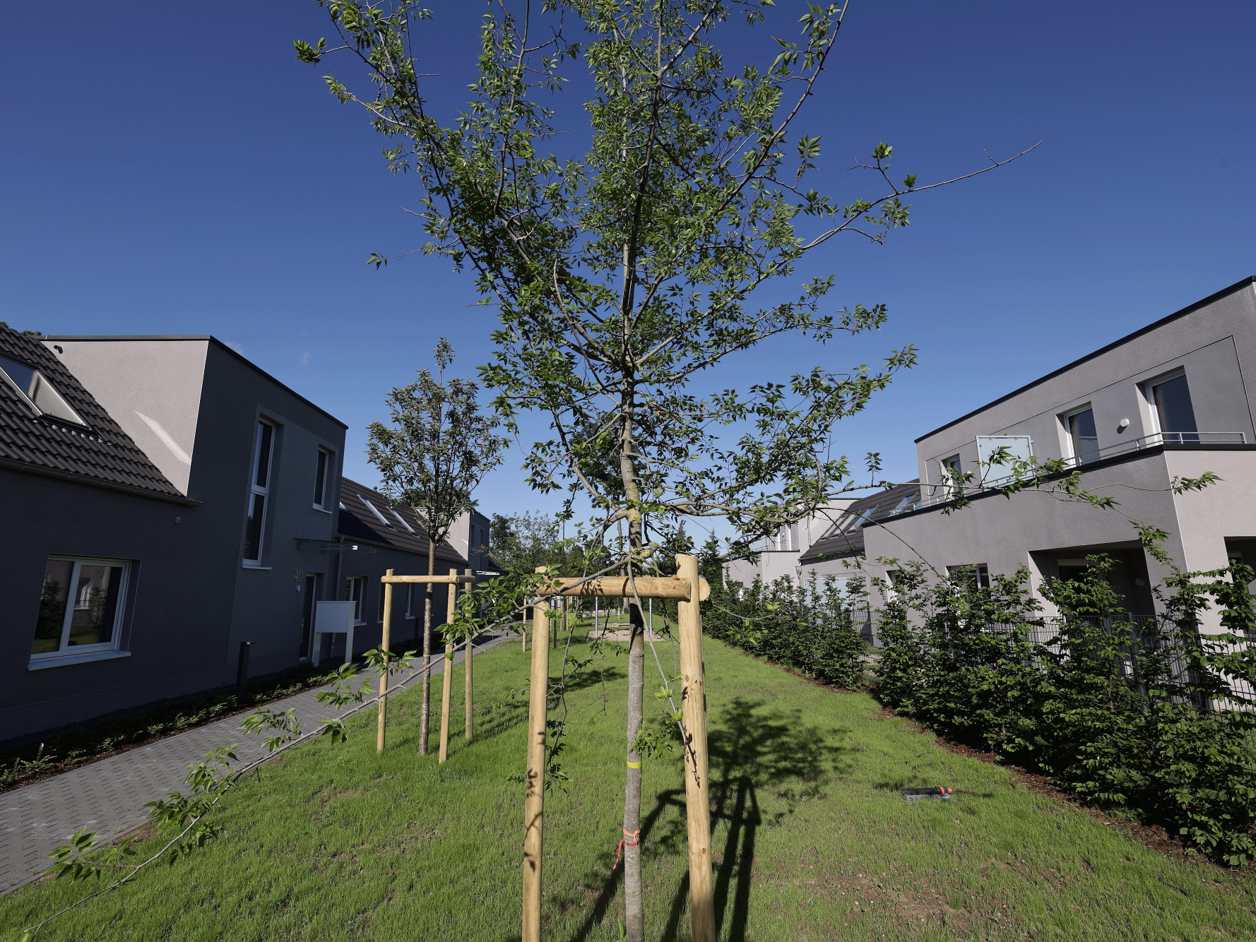 Am Roten Haus in Unterrath sind 20 Wohnungen mit insgesamt rund 1.600 Quadratmetern Wohnfläche entstanden. Die Bauabnahme ist bereits mit Erfolg vollzogen worden, aktuell stehen noch Arbeiten am Stromanschluss einiger Häuser an. Zwölf der 20 Wohnungen gehören zur Förderkategorie A und die restlichen acht zur Förderkategorie B. Die SWD bietet hier also bezahlbaren Wohnraum in einem wirklich attraktiven Wohnumfeld. Die Mieterinnen und Mieter der bereits vergebenen Wohnungen können ab September die hellen Wohnungen mit großzügigen Grünanlagen beziehen. Der große Fahrradkeller ist über eine Treppe mit Rampe gut erreichbar.