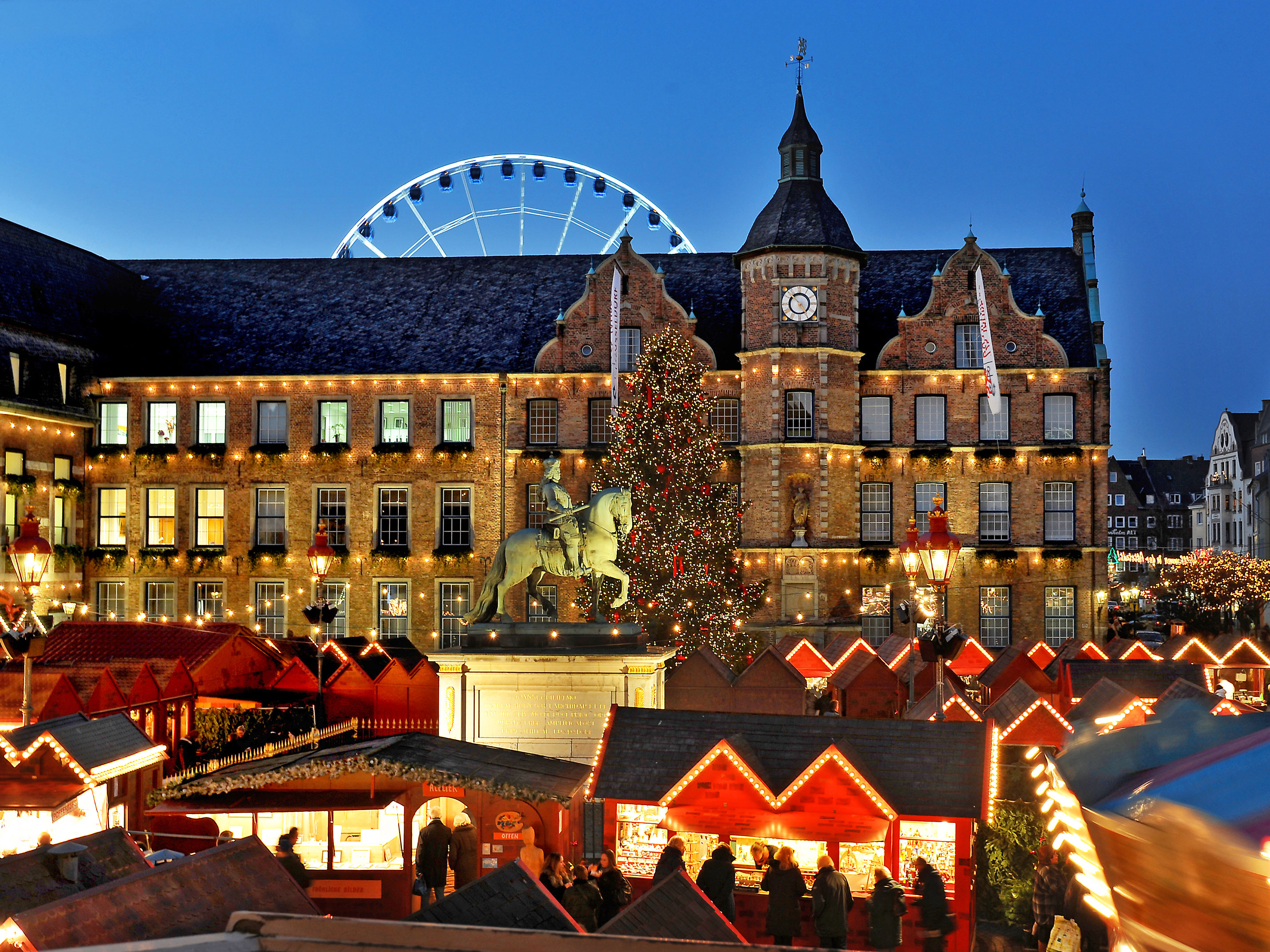 Seit dem 17. November hat die Vorweihnachtszeit in Düsseldorf offiziell begonnen, denn der Weihnachtsmarkt in der Innenstadt ist eröffnet und läuft bis zum 30. Dezember ein. Sieben unterschiedlich gestaltete Themenmärkte sorgen für weihnachtliche Atmosphäre unter anderem in der Altstadt, an der Kö oder an der Schadowstraße und vor dem Schauspielhaus. Auf dem Burgplatz steht bereits seit einigen Wochen das Riesenrad „Wheel of Vision“. Am Nordende der Königsallee bietet die „Winterwelt“ Eislaufen und Eisstockschießen. Nahezu in jedem Stadtteil Düsseldorfs gibt es in den kommenden Wochen kleinere und größere Weihnachtsmärkte.