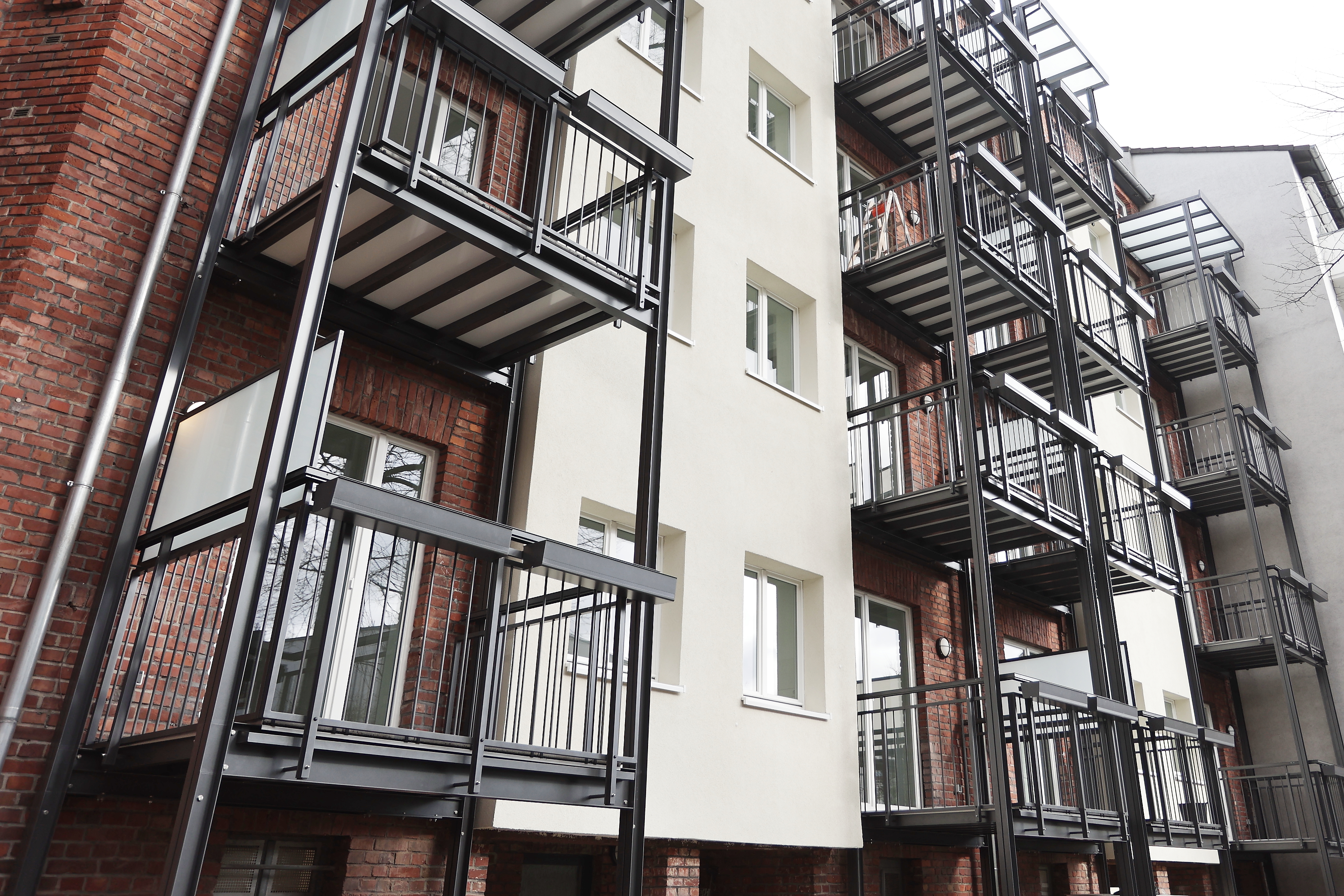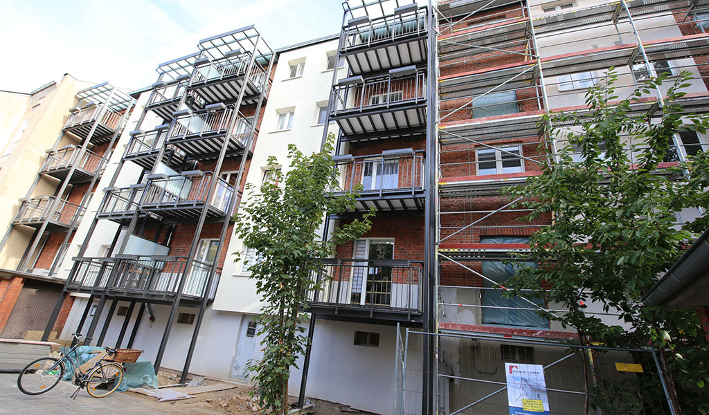 Ein Highlight sind die neuen vorgebauten Balkone zu jeder Wohnung. Sie bedeuten eine Steigerung der Wohnqualität für die Mieterinnen und Mieter, denn bisher verfügten die Häuser über keine Balkone. In allen Wohnzimmern werden große Durchbrüche für die Balkontüren hergestellt. So gelangt dann auch mehr Licht in die Wohnungen. Dabei werden nicht nur die neuen Balkontüren eingesetzt, sondern auch alle Fenster ersetzt. Diese optische Aufwertung spart Heizkosten.