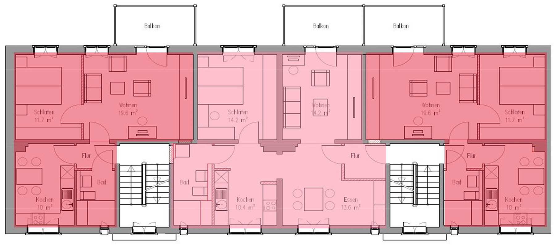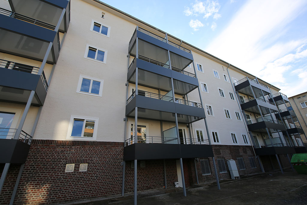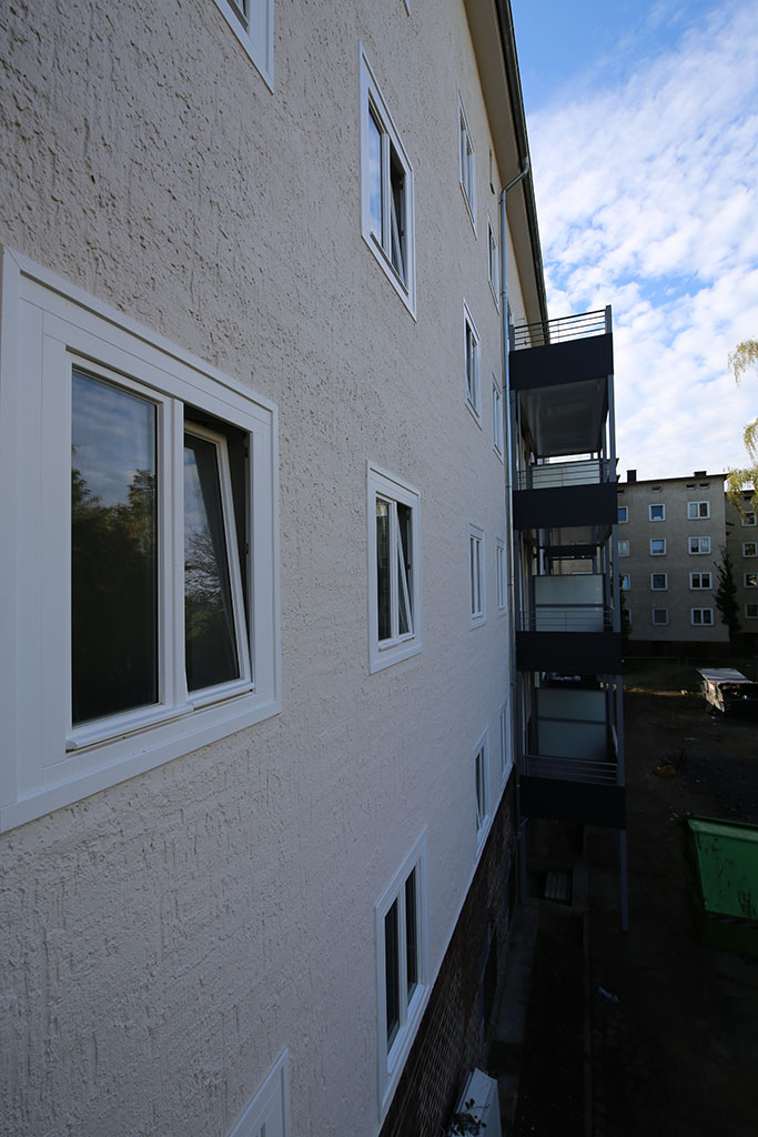 Die Wohnungen der Flachdachgebäude wurden bereits in den 1970er Jahren im Rahmen einer ersten Modernisierung mit Bädern, Zentralheizung und isolierverglasten Kunststofffenstern ausgestattet.