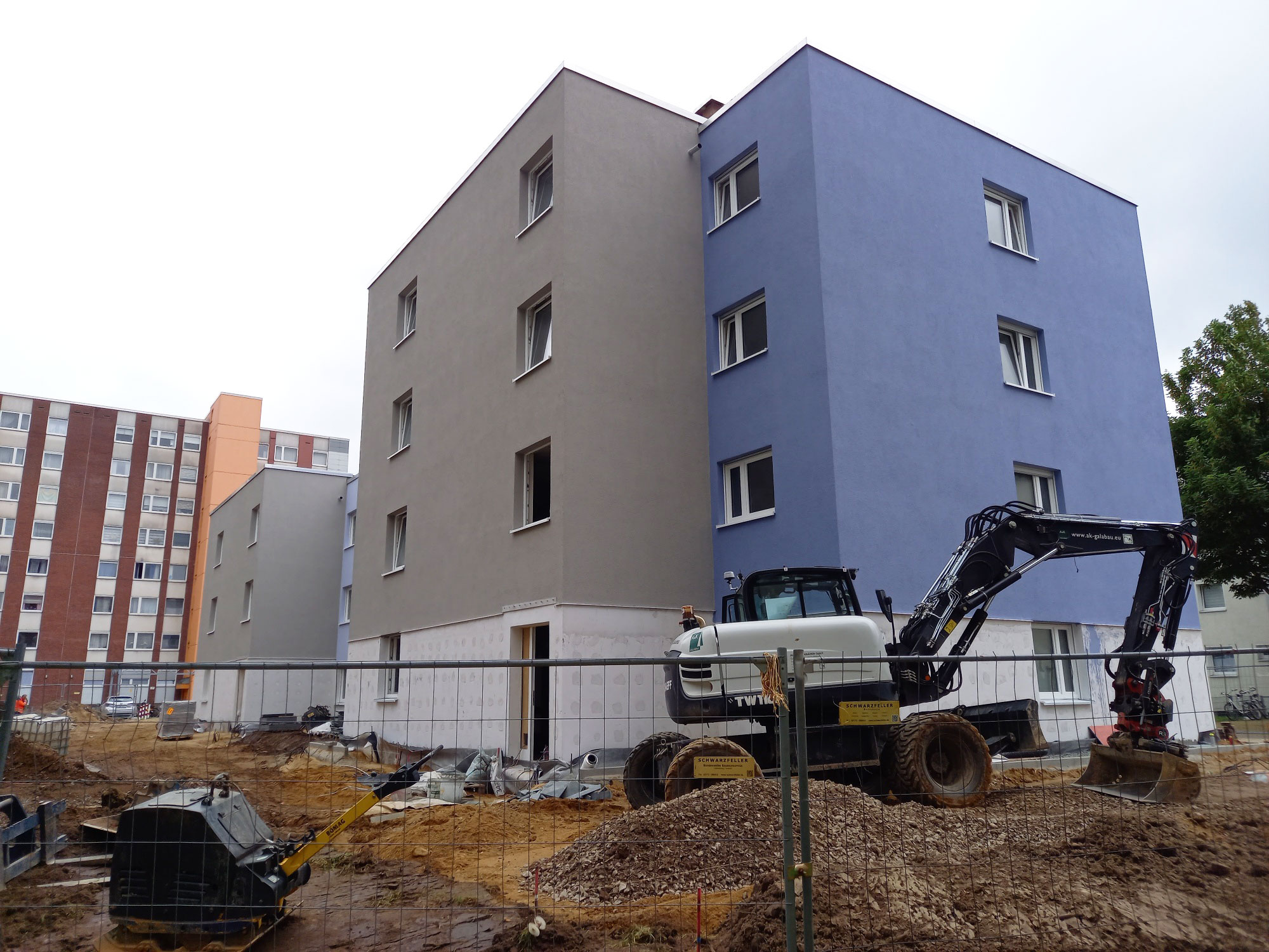 Auch die Außenanlagen werden komplett neugestaltet. So entstehen 30 überdachte Fahrradstellplätze und auch eine Kinderspielfläche.